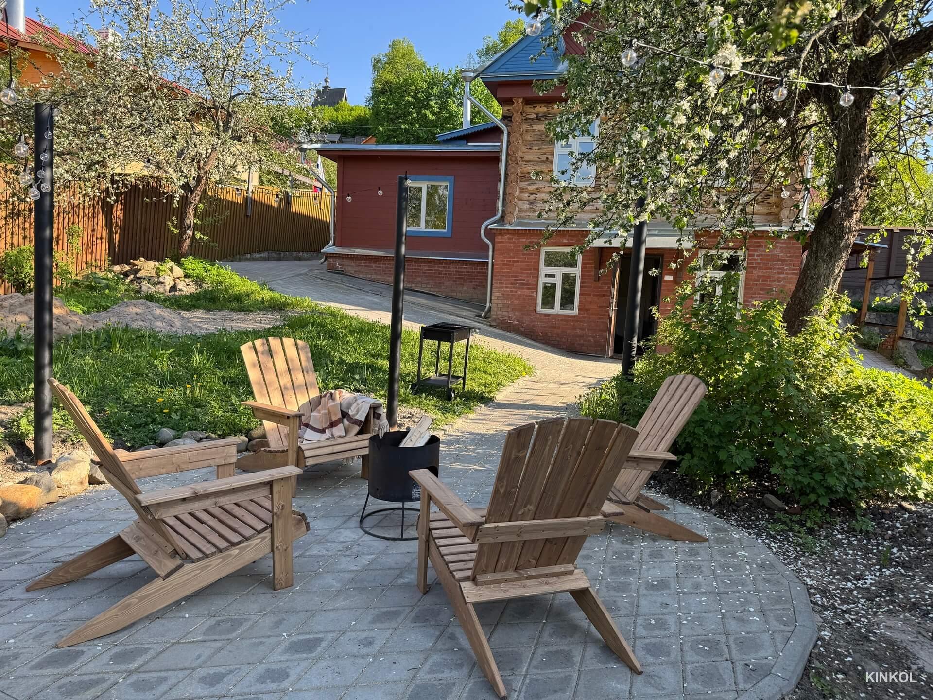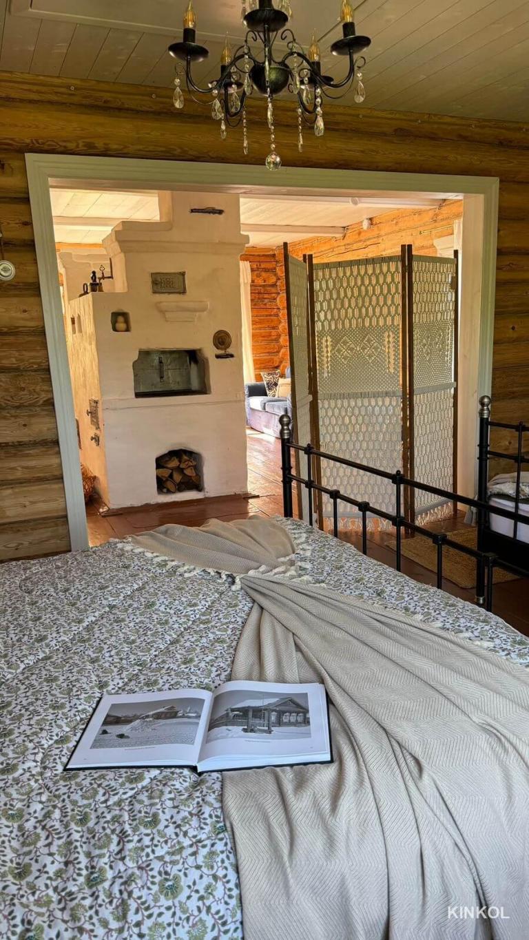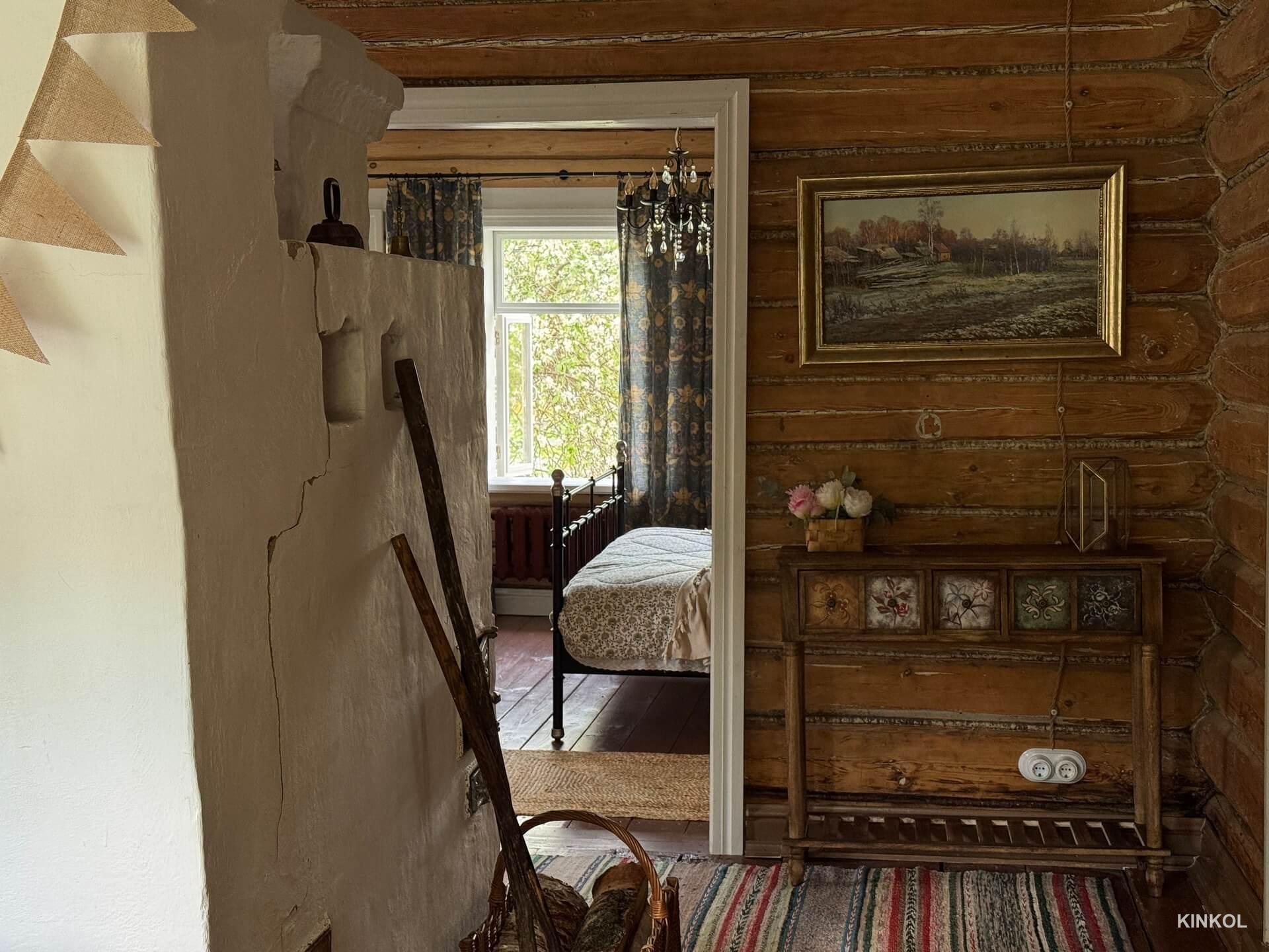 Mais le principal trésor de la maison est un véritable poêle russe, qui a été soigneusement restauré et peint. Il est situé au centre du salon, où se trouve également un canapé moelleux et une table en bois sculptée entourée de chaises viennoises.