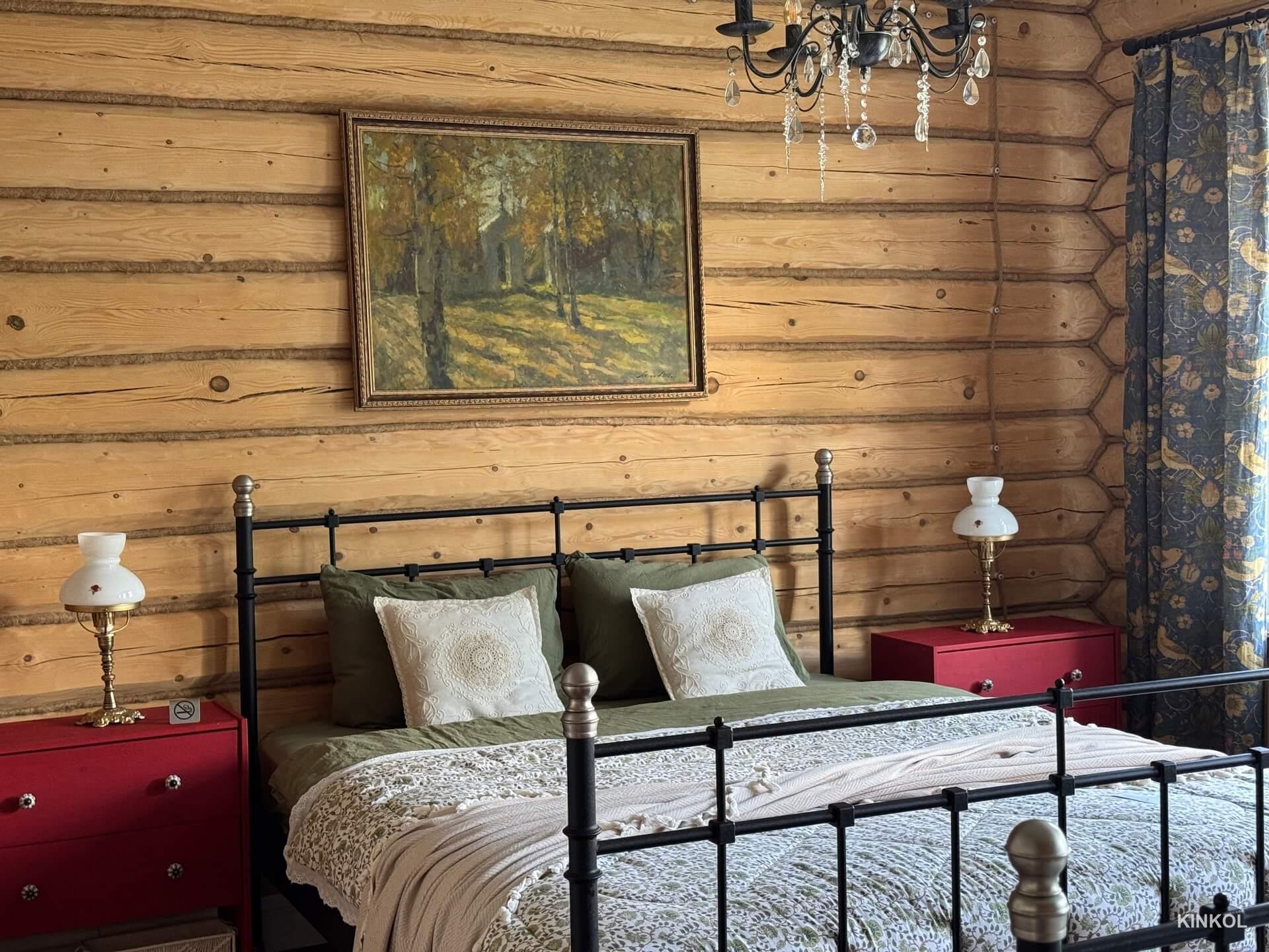 L'intérieur de l'izba est conçu dans un style qui combine les traditions du passé avec le confort moderne. Ici, les anciens crochets, pots et samovars coexistent harmonieusement avec un micro-ondes, une bouilloire électrique et une machine à café. Les cadres de fenêtres sculptés ornent les fenêtres, et les lits sont équipés de matelas orthopédiques. Une attention particulière est portée aux peintures des artistes locaux de Plyos, capturant la beauté de cette ville provinciale.